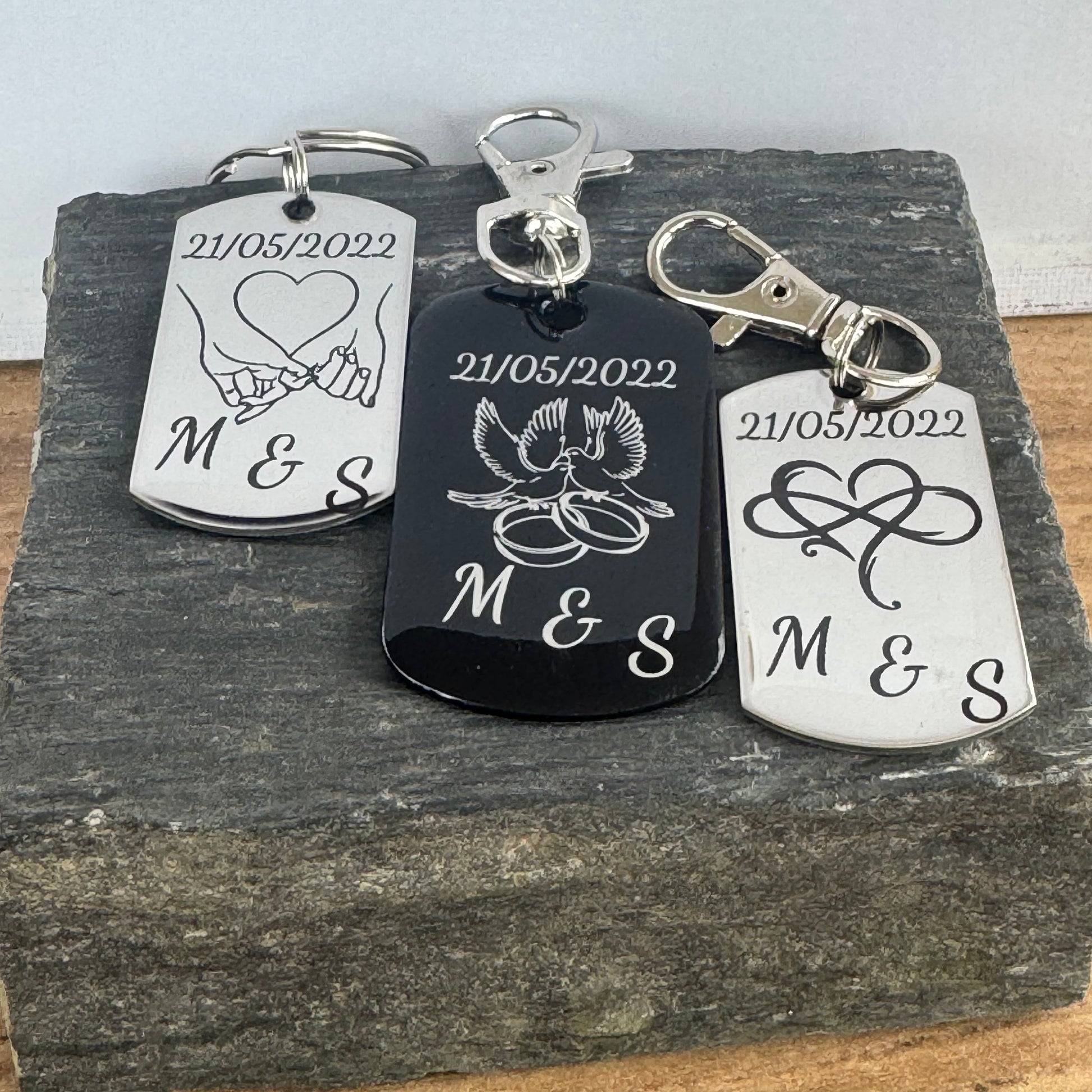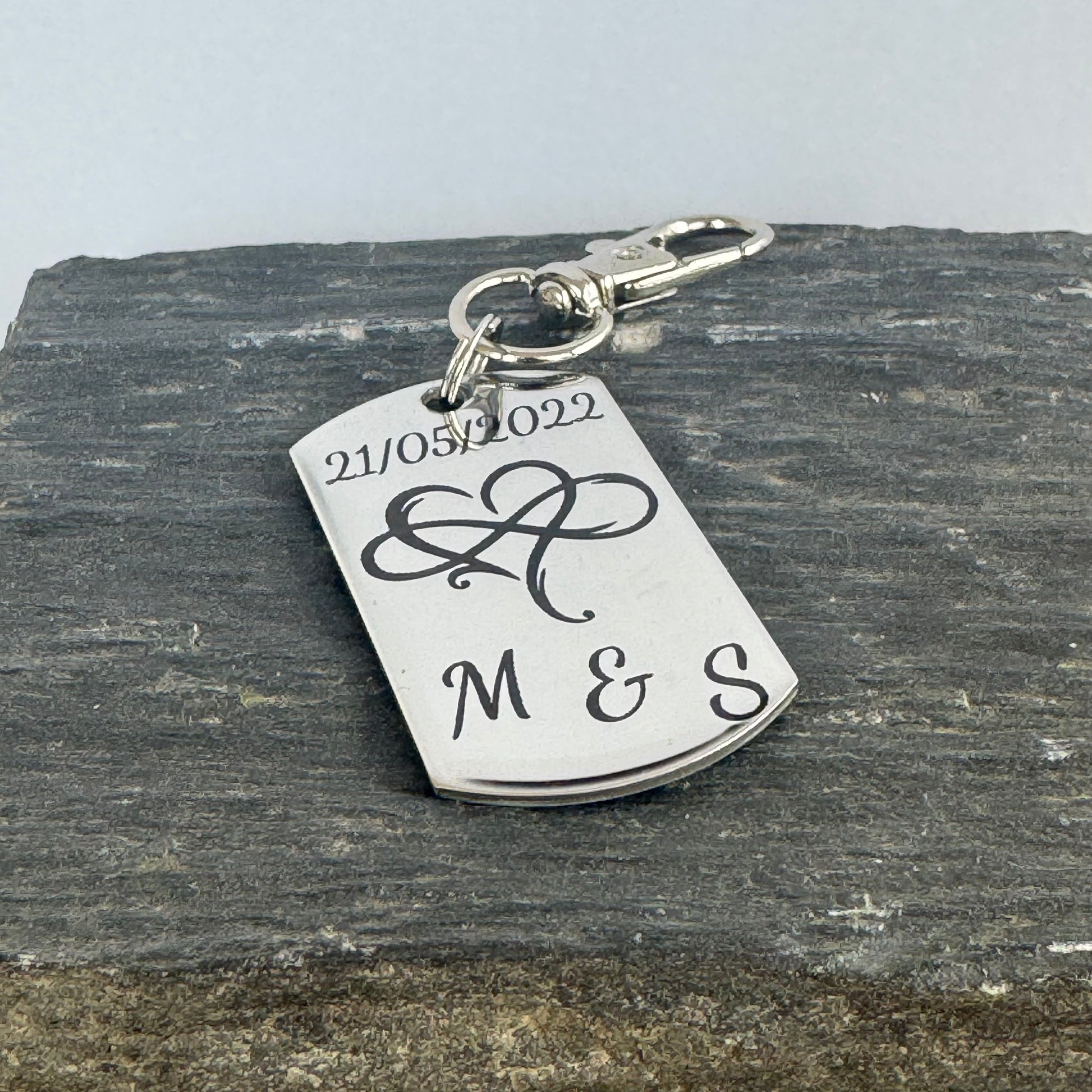 Offrez-vous un porte-clé unique et personnalisé pour immortaliser la date de votre rencontre, de mariage ou tout simplement une date spéciale grâce à ce joli porte-clé en acier inoxydable avec effet miroir ou en aluminium anodisé noir.
